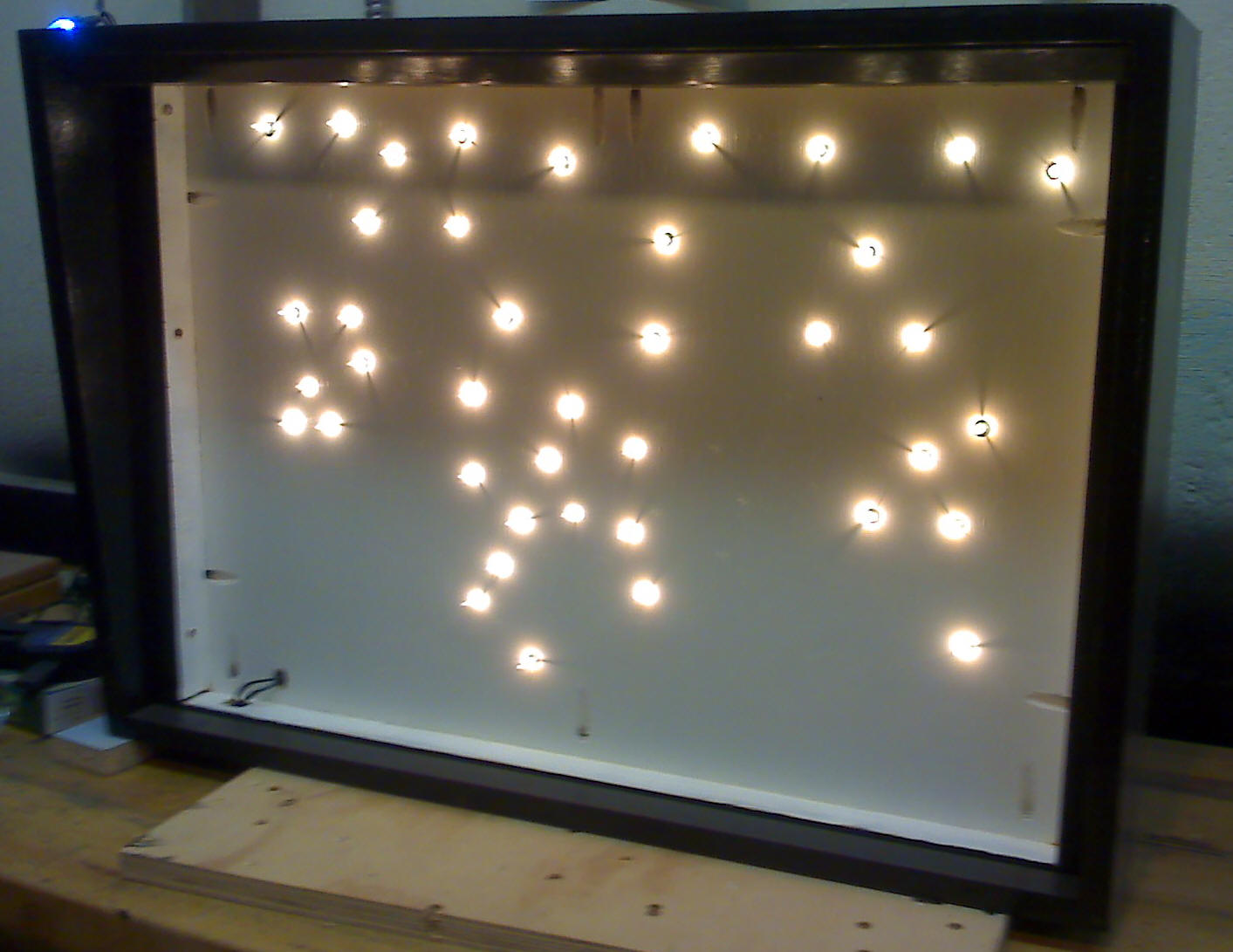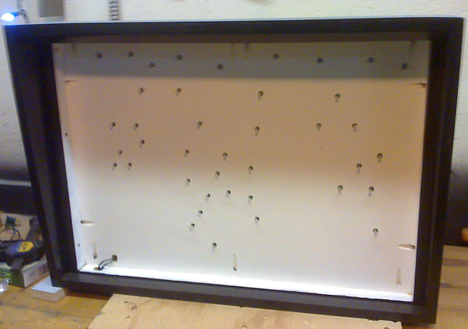 I made the back box and mimicked the original light layout using Xmas lights, I sent the back box as seen on left