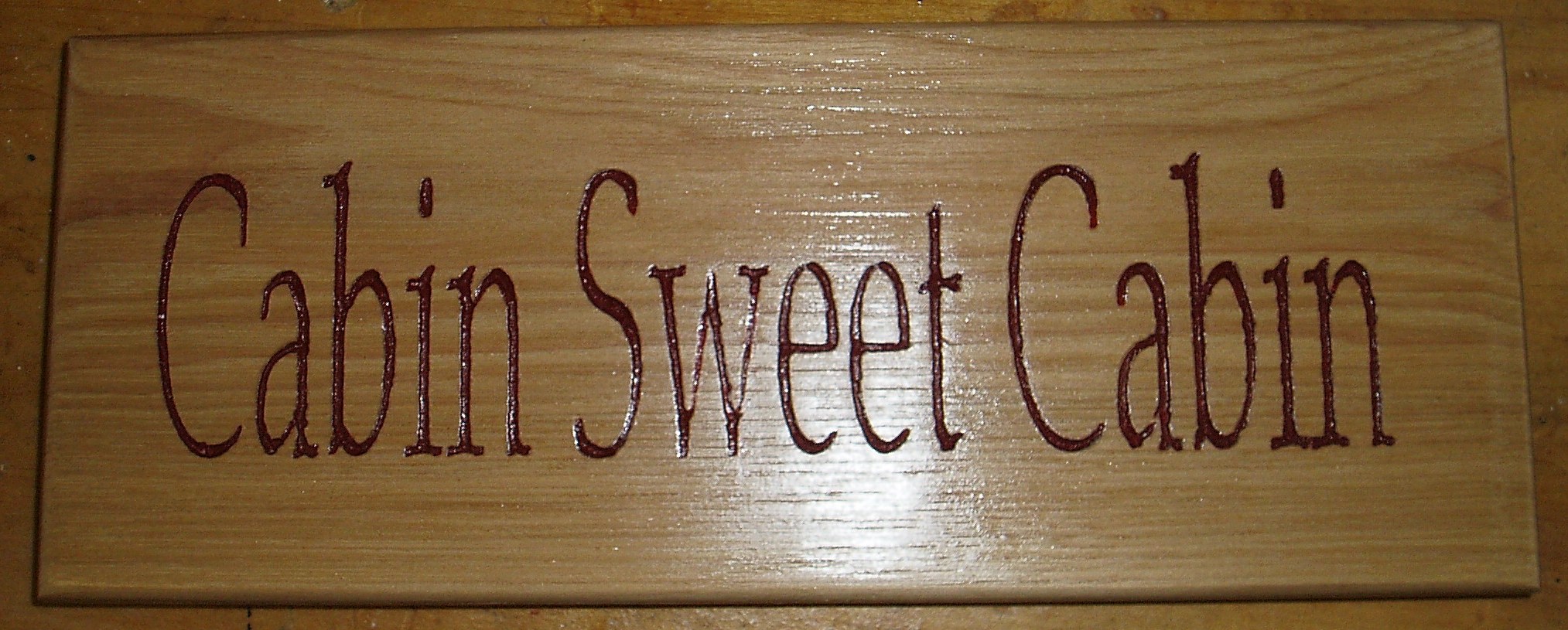 A variation is the painted carved letters on real wood