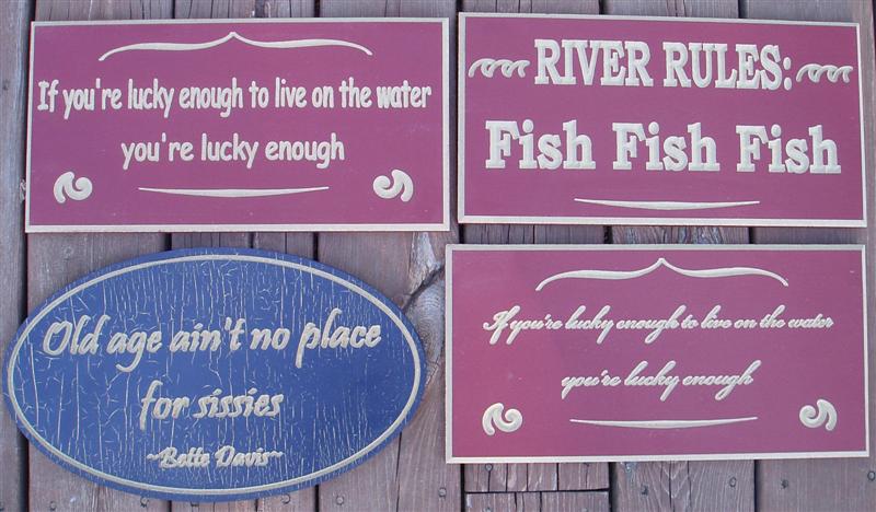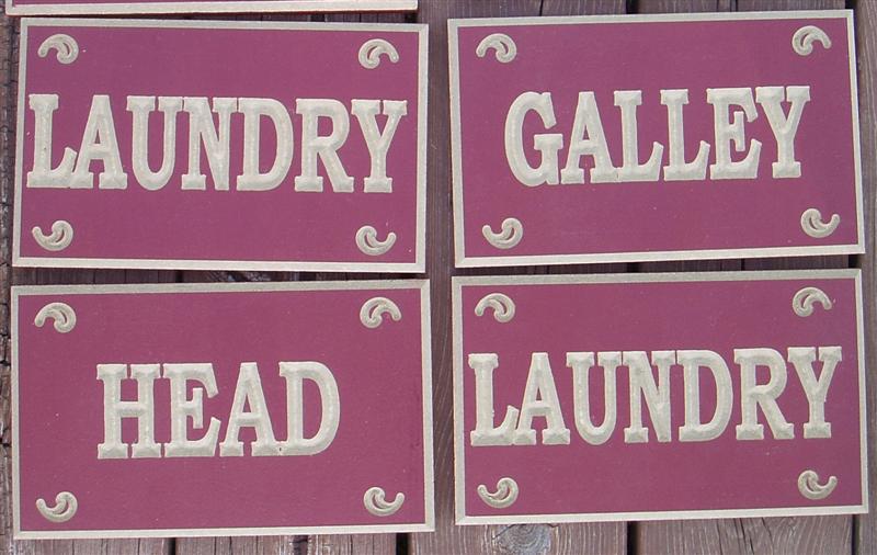 The signs below are painted then carved, creating a good looking, inexpensive method of making a custom sign.