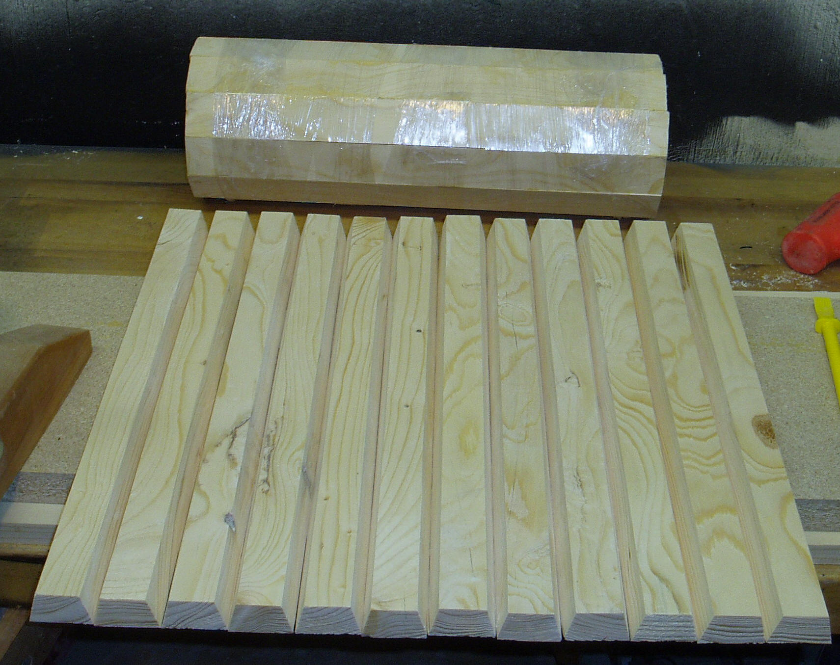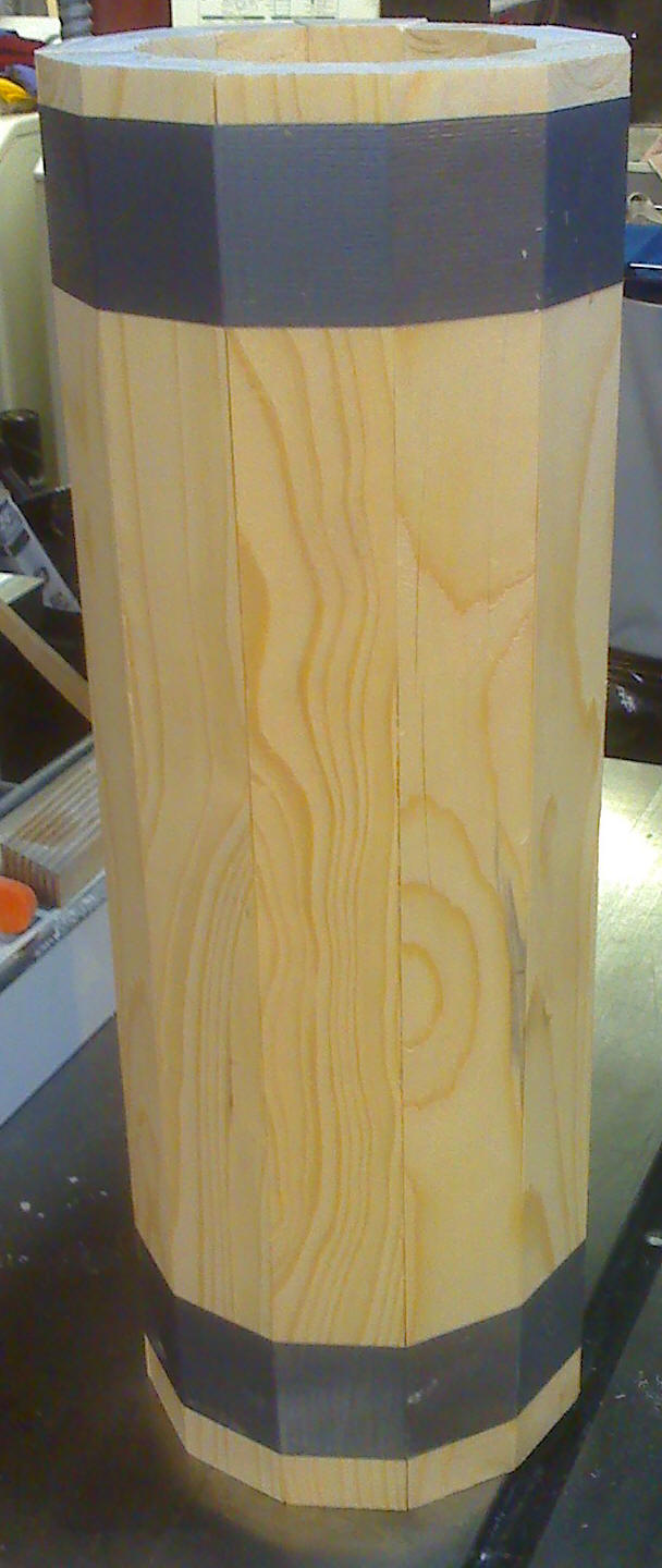 Each column is a 12 stave cylinder, duct tape makes it easier to assemble the staves, it handles like a tambour