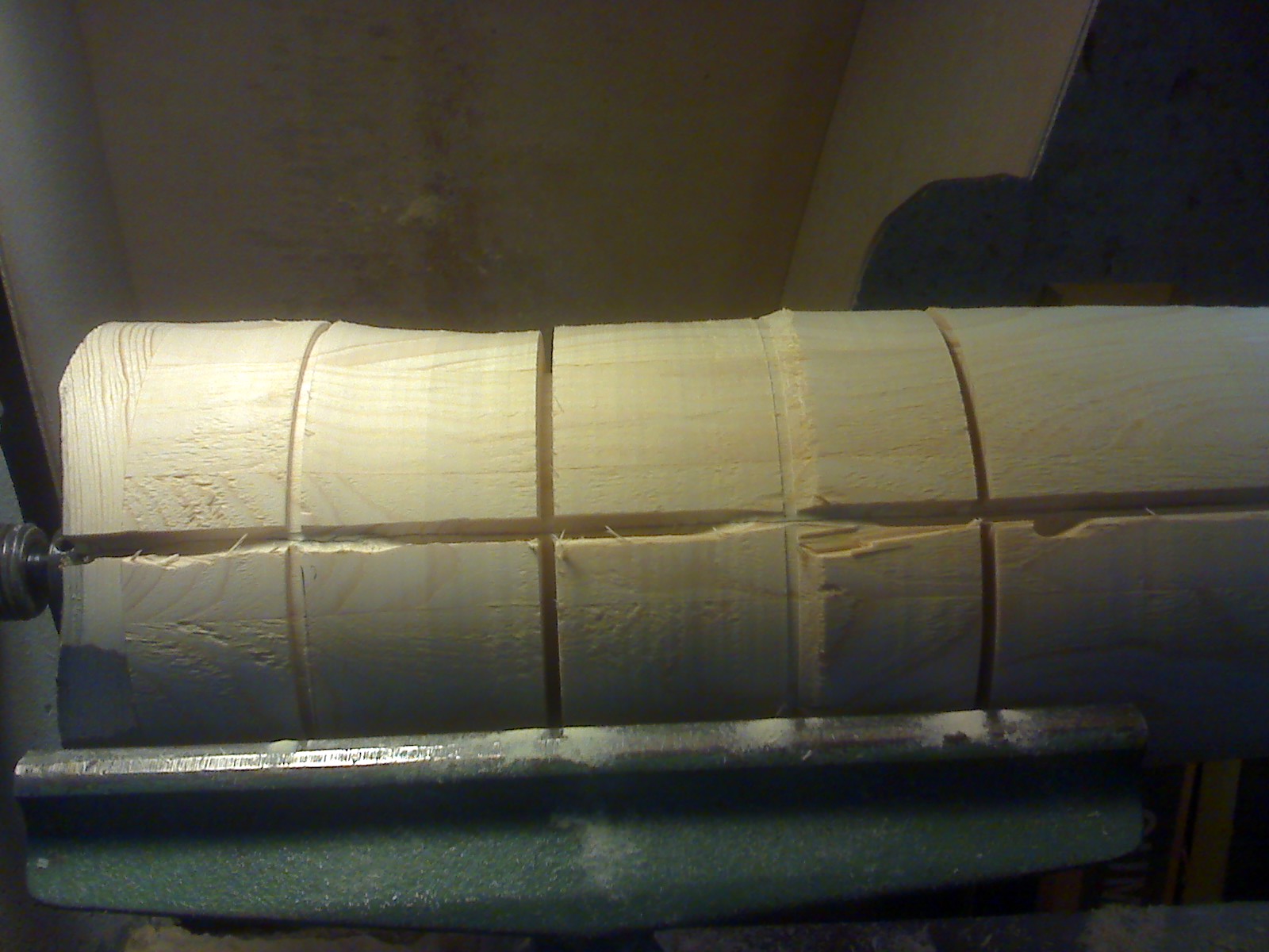 I mounted the blanks into the lathe and started turning down to the traced in profile.