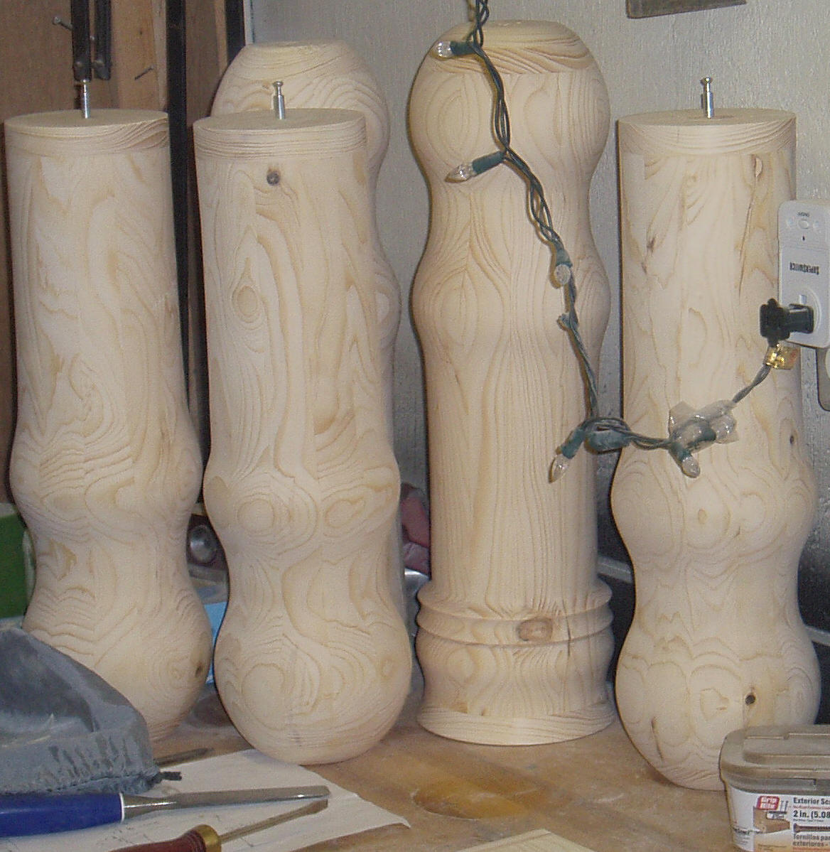 I used my Copy Carver to cut the patterns, I didn't have or want a lathe tracer large enough to make the columns.