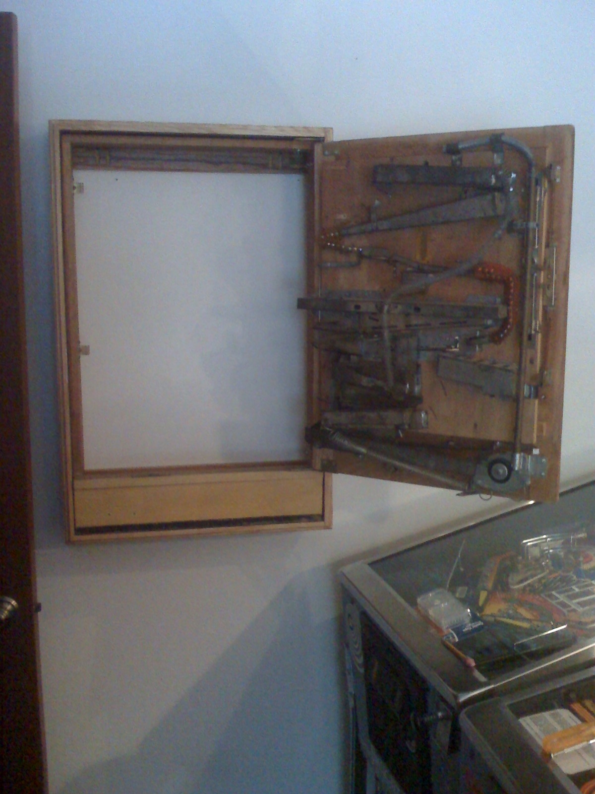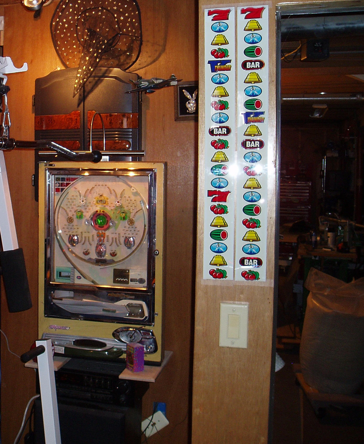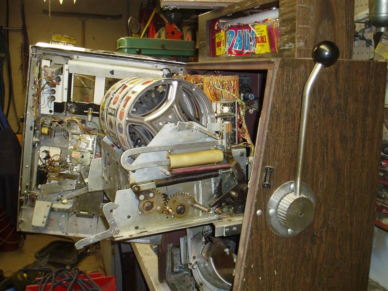I made a pachi-stand on wheels for the pachinko's, a shot of the guts of a Bally 70's quarter slot