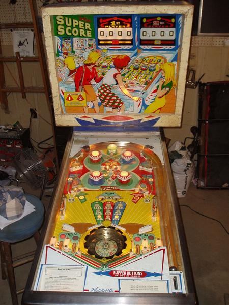 and 1967 Gottlieb Super Score 4 flippers with roulette wheel 'spin a ball' feature